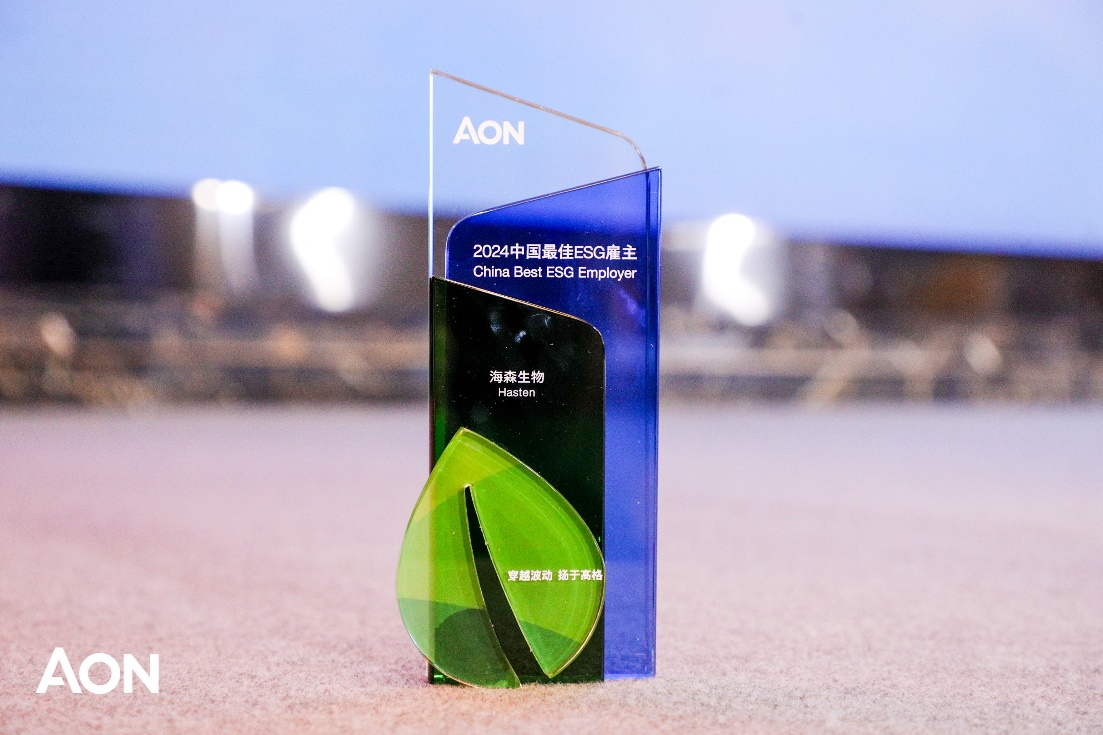 December 5th, 2024 – Shanghai, China. Aon Group, a leading global professional services firm, today announced it has released the China Best ESG Employers Award list for 2024. Hasten Biopharmaceutical Co., Ltd. (hereinafter referred to as Hasten) was awarded "2024 China Best ESG Employer Award" out of overall 186 companies.