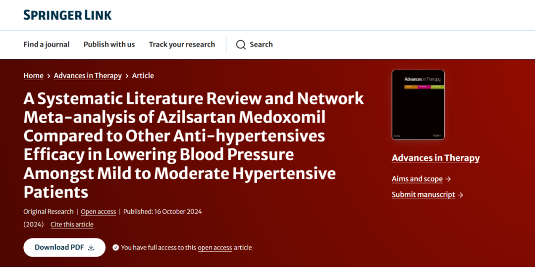 關于 Advances in Therapy:Advances in Therapy是一本國際性、開源、經(jīng)同行評審快速發(fā)表模式的期刊。該期刊致力于發(fā)表高質量的臨床(所有階段)、觀察性、真實世界和健康結果研究,包含所有治療領域的療法和干預措施(包括設備)的研發(fā)和應用,以及有關診斷,藥物經(jīng)濟學,公共衛(wèi)生,流行病學,生活質量,病人護理、管理和教育的研究。