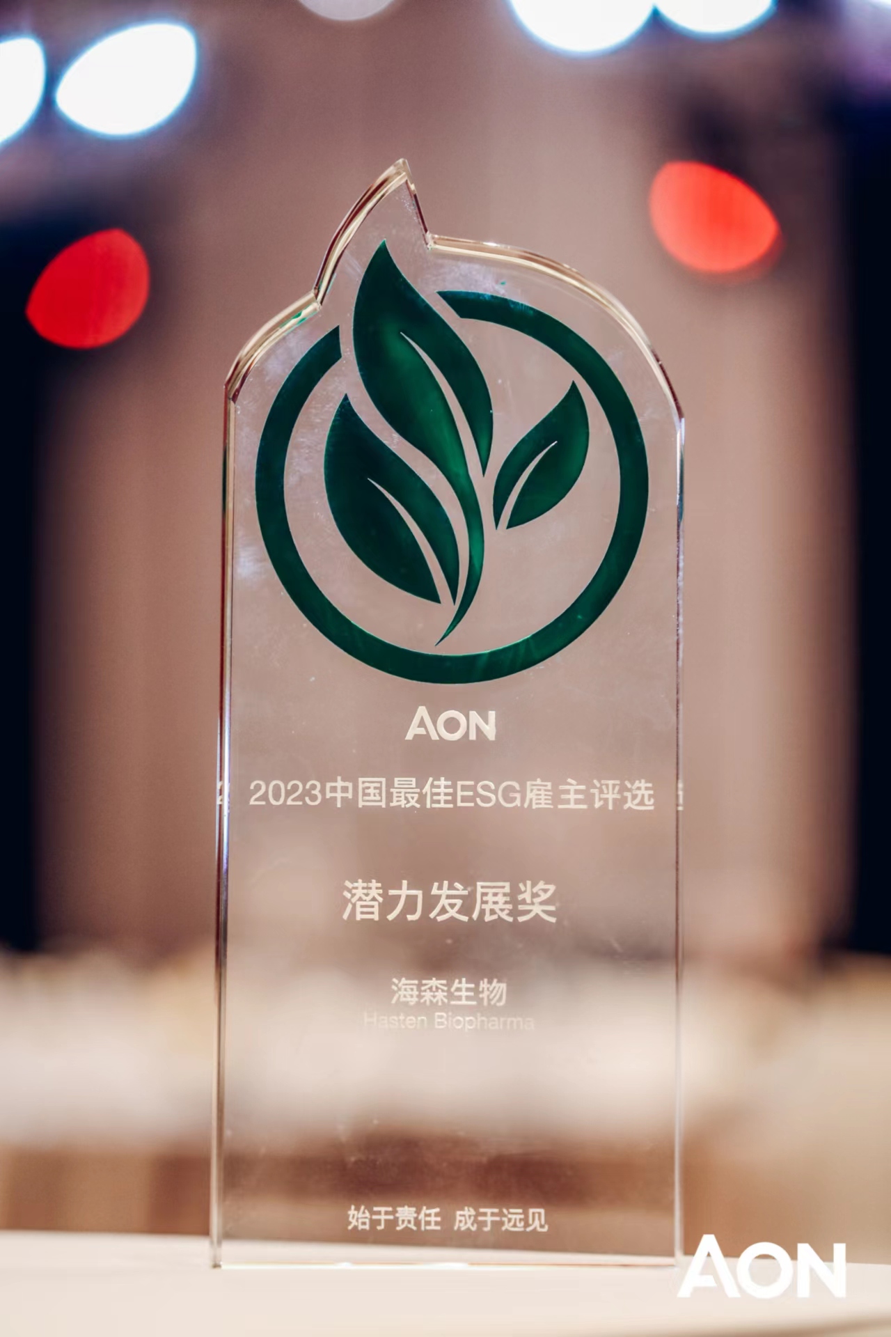 海森生物首席執(zhí)行官夏少斐表示:“感謝怡安集團和評審團對海森生物的認可,作為一家成立僅3年、商業(yè)運營僅18個月的中國生物醫(yī)藥企業(yè),海森生物正處在飛速發(fā)展和不斷完善全產(chǎn)業(yè)鏈的過程中,我們深度認同ESG對企業(yè)實現(xiàn)高質(zhì)量發(fā)展的重要意義,始終將ESG的建設(shè)融入到海森生物的發(fā)展戰(zhàn)略中。今后,海森生物將不斷加大ESG理念的踐行力度,貫徹可持續(xù)發(fā)展的核心精神,堅守使命,造福更多患者,共創(chuàng)社會健康價值!”